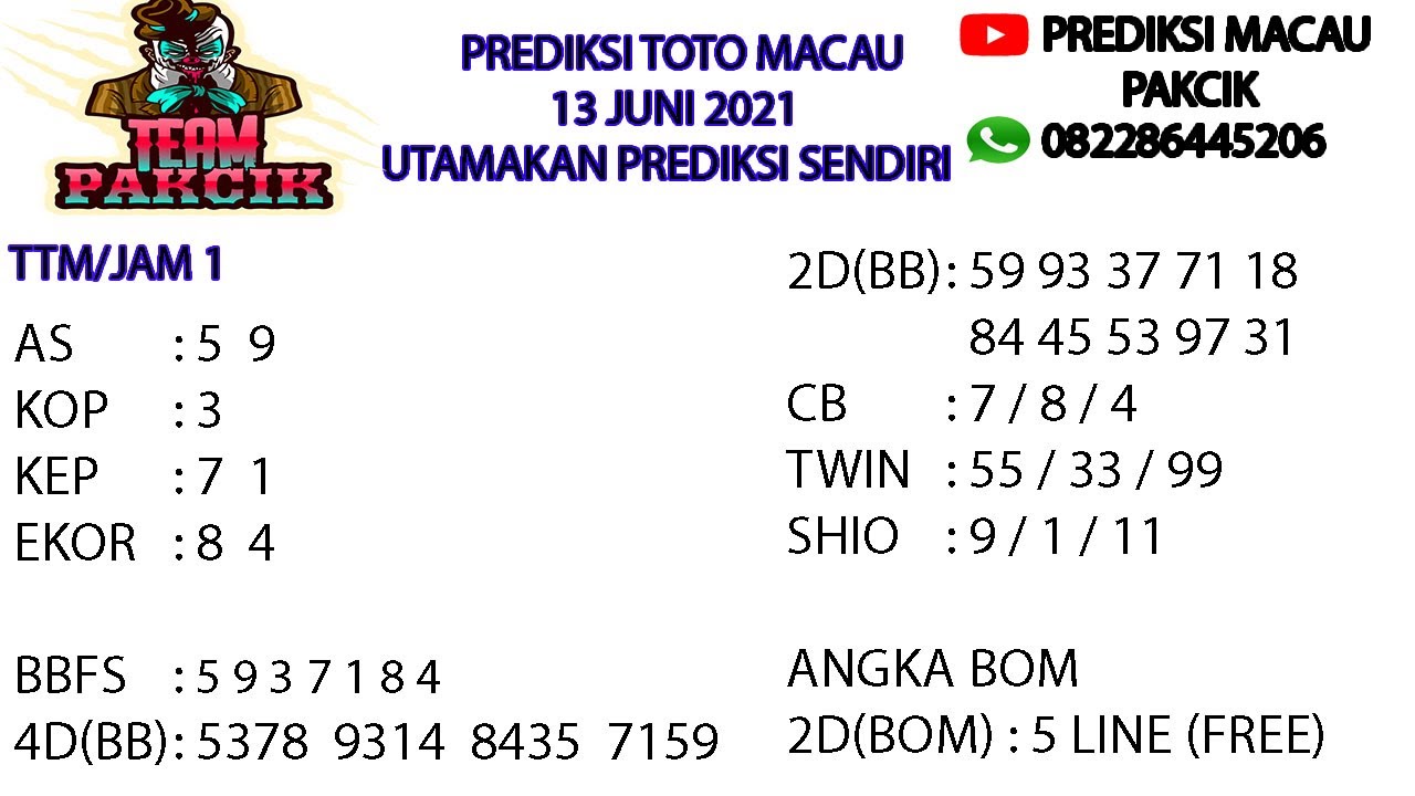 Prediksi Toto Macau Hari Ini 13 Juni 2021 Rumus Macau Bocoran Macau Angka Main Ttm Youtube